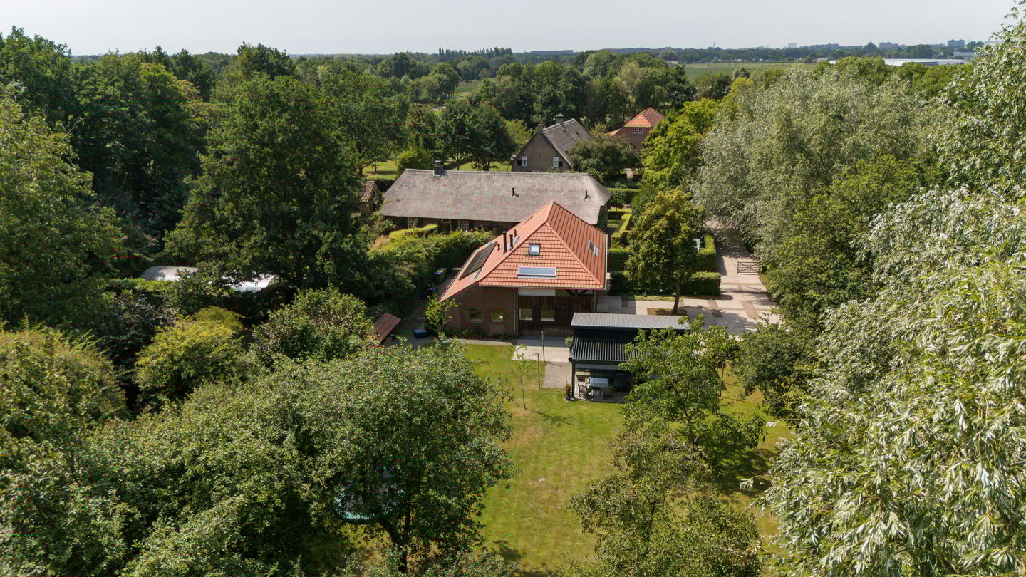 Aan dit bijgebouw is in 2025 een zeer degelijke overkapping geplaatst, een heerlijk verlengstuk van de leefruimte in de tuin. Het dak is te openen en sluiten (een lamellen-systeem), zowel voor lichttoetreding als bescherming tegen regen. Tevens is de overkapping voorzien van uitschuifbare windschermen.