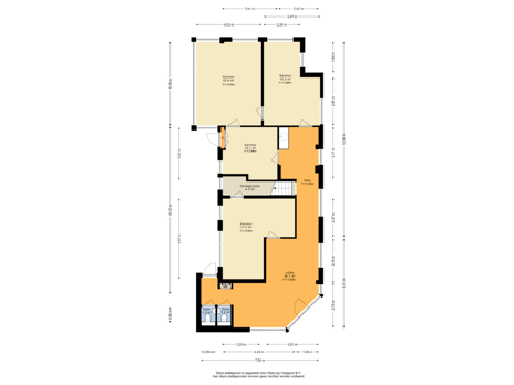 - 16 m² (8,00 meter diep en 2,00 meter breed)