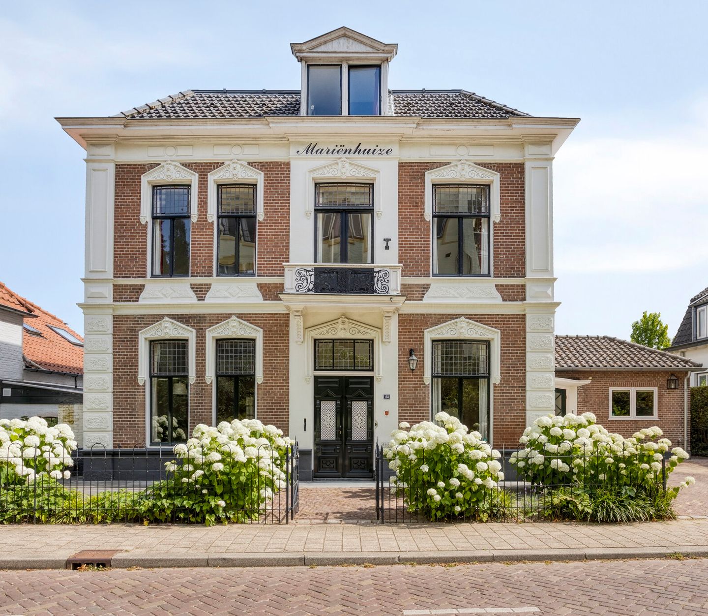 Bij aankomst valt direct de prachtig, gedetailleerde gevel op, met sierlijke ornamenten, verfijnd snijvoegwerk, hoge ramen en een charmant balkon. De stijlvolle architectuur en de historische uitstraling maken Mariënhuize tot een echte eyecatcher. De villa is ruim opgezet en beschikt over royale leefruimtes met hoge plafonds, waardoor een gevoel van licht en ruimte wordt gecreëerd.