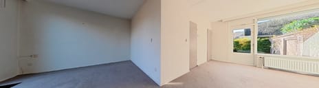 Entree, hal, toilet en toegang tot de lichte L-vormige woonkamer met open haard, een sfeervolle plek om te ontspannen. De woonkamer biedt direct toegang tot de zonnige achtertuin, net als de eetkeuken, die via de woonkamer en via de hal bereikbaar is.