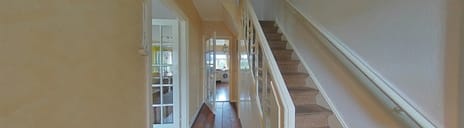 Bij binnenkomst tref je een lichte entree met toegang tot de kelder van 7,7 m², ideaal voor extra opslagruimte. De ruime woonkamer van circa 29 m² voelt dankzij de grote raampartijen aangenaam licht en biedt volop plek voor zowel een zit- als eethoek. Vanuit de keuken is er direct toegang tot de achtertuin, waardoor binnen en buiten moeiteloos in elkaar overlopen. De begane grond is verder voorzien van een separaat toilet.