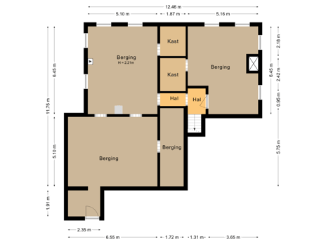 Ruim van opzet, bestaande uit diverse (berg)ruimtes.