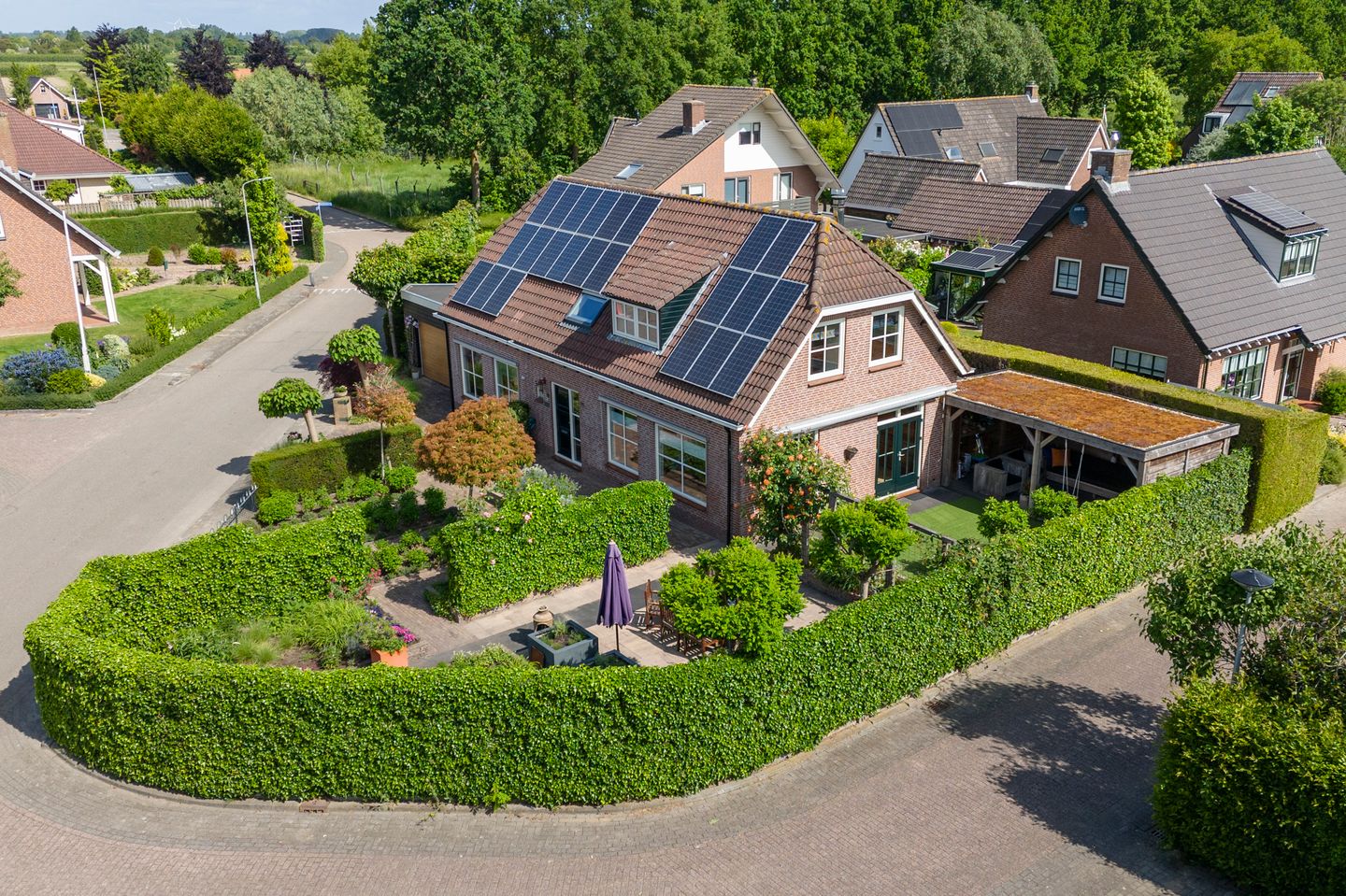 Binnen tref je een royale woonkamer met open haard, een leefkeuken én twee extra kamers op de begane grond die momenteel dienst doen als speelkamer en thuiswerkplek. Boven zijn er meerdere ruime slaapkamers, met zelfs de optie om een van de grotere kamers eenvoudig op te splitsen. En de zolder? Die biedt zeeën aan bergruimte. In de tuin geniet je beschut onder de sedum dak overkapping van 23 m² of klus je wat in de vrijstaande schuur met vliering. Kortom: een heerlijk familiehuis, instapklaar en klaar voor de toekomst.