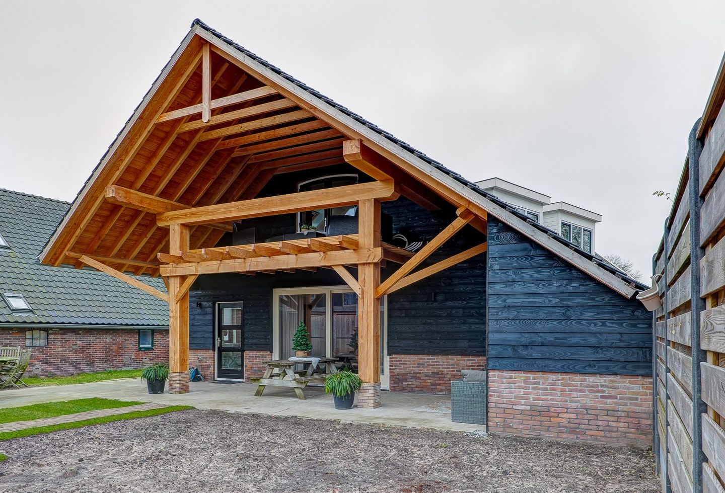 De buitenruimte is eveneens goed doordacht. Aan de voorzijde van de woning is een ruime oprit met ruimte voor twee auto's. De fraai aangelegde veranda aan de achterzijde is een ideale plek om te ontspannen en van de tuin te genieten. Een ander groot pluspunt is de fraaie houten schuur van wel 46 m2 met verdieping en voorzien van zowel een wateraansluiting als elektriciteit. Aan berg- en/of klusruimte geen gebrek!