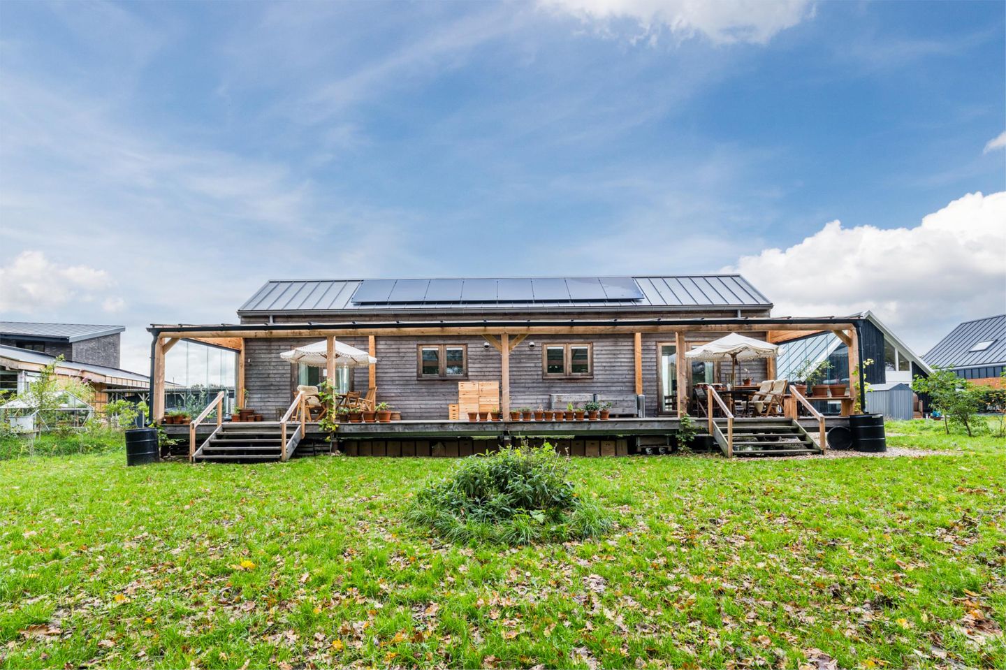 De wooneenheden zijn in 2022 biobased gebouwd in houtskeletbouw. De huisdelen staan stevig op 80 cm boven de grond uit stekende stalen palen gevuld met beton. Dak en dakgoten zijn van staal en de isolatie is van houtwol. Heel prettig is de natuurlijk vergrijzende onderhoudsvrije gevelbekleding van thermisch gemodificeerd Europees naaldhout. Ramen en kozijnen zijn ook gemaakt van onderhoudsvrij thermisch gemodificeerd Europees naaldhout en geven een mooi zicht op de tuinen rondom. De ventilatieroosters en het A+++ glas zorgen voor een prettig binnenklimaat. Het hoge plafond in de kamer geeft een ruimtelijk gevoel. De moderne badkamer is voorzien van toilet, vaste wastafel en inloopdouche. De ruime vliering ( 9 m2) met dakraam is te bereiken met een stalen wenteltrap en te gebruiken als werkruimte, slaapkamer of opslagruimte.