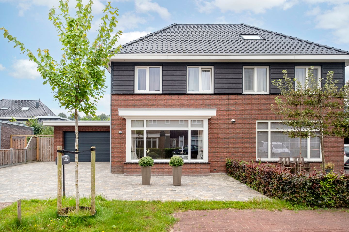 Deze TWEE-ONDER-EEN-KAPWONING is gebouwd in 2020 en biedt volop woonruimte met 161 m² woonoppervlak en daarnaast een extra grote garage van maar liefst 32 m²! De ruimere maatvoering komt tot uiting in de royale woonkeuken (door de uitbouw), de grote bijkeuken (17 m²) en de vier royale slaapkamers, waar op de zolder ook een 5e gecreëerd zou kunnen worden. Daarnaast heeft de oprit ruimte voor 5 auto’s. De woning is optimaal geïsoleerd en voorzien van vloerverwarming, airconditioning, zonnepanelen en heeft energielabel A. Aan de achterzijde is een stijlvolle overkapping geplaatst en de tuin is onderhoudsvriendelijk.