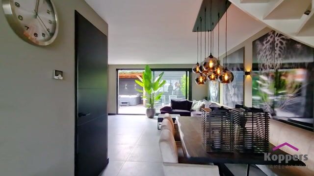 De begane grond verwelkomt je met een ruime en sfeervolle woonkamer, afgewerkt met een fraaie plavuizen vloer met comfortabele vloerverwarming. De moderne tv-wall met haard vormt een echte blikvanger en geeft de living extra sfeer. Hier geniet je volop van het gezinsleven, met een mooi zicht op de achtertuin en alle ruimte voor een riante eettafel waar je lange, gezellige avonden samen doorbrengt. Via de grote schuifpui verbind je binnen en buiten moeiteloos met elkaar. Aan de voorzijde ligt de strakke, moderne keuken die van alle gemakken is voorzien, waaronder een geïntegreerd afzuigsysteem, Quooker en volop praktische bergruimte. De keuken beschikt bovendien over een stijlvol kookeiland met bar — dé plek om gezellig aan te schuiven tijdens het koken. Niet alleen sfeervol, maar ook bijzonder praktisch dankzij de extra werkruimte en opbergruimte die het eiland biedt. Echt een heerlijke leefkeuken!