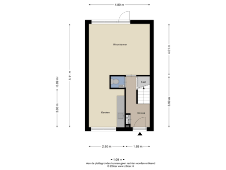 Entree/hal met meterkast, trapopgang naar de eerste verdieping, trap-/provisiekast en een toilet met fonteintje. Vanuit de hal komt u in de tuingerichte woonkamer met een prettige lichtinval en directe doorloop naar de open keuken. De keuken is uitgevoerd met een standaard kunststof keukenblok, voorzien van een HPL-werkblad en een onderbouw afzuigkap.