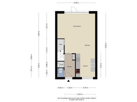- 68 m² (12,18 meter diep en 5,62 meter breed)