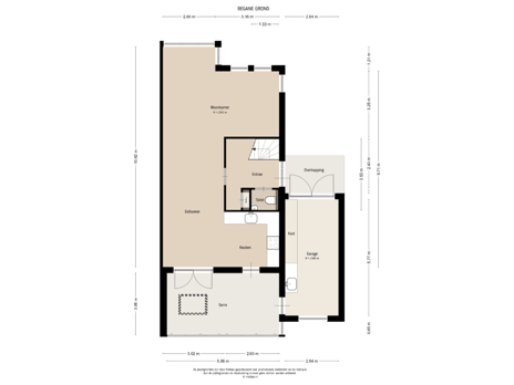- 90 m² (9,50 meter diep en 10,00 meter breed)