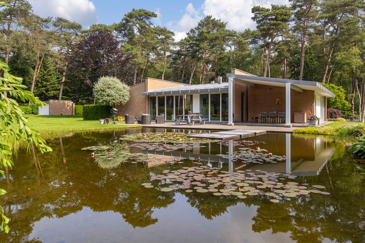 De tuin rondom de woning is indrukwekkend groot, met volwassen bomen, weelderige borders en een prachtig aangelegde vijver. Een plek waar de natuur de hoofdrol speelt — en jij de toeschouwer bent, elke dag opnieuw. Terrassen bieden zon én schaduw, en zonnepanelen zijn op natuurlijke wijze in het landschap geïntegreerd.