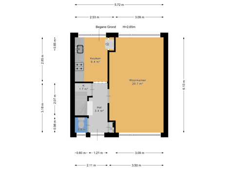 Toelichtingsclausule BBMI: de woning is ingemeten conform de branchebrede meetinstructies (BBMI), afgeleid van de NEN 2580 normering. De Meetinstructie is bedoeld om een meer eenduidige manier van meten toe te passen voor het geven van een indicatie van de gebruiksoppervlakte. De Meetinstructie sluit verschillen in meetuitkomsten niet volledig uit, door bijvoorbeeld interpretatieverschillen, afrondingen of beperkingen bij het uitvoeren van de meting.