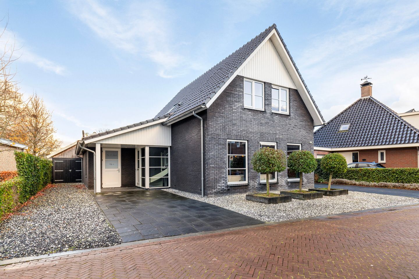 Oprit met opstelplaats voor meerdere auto's, goed verzorde voortuin en overdekte zij-entree: Ruime en lichte hal door grote raampartijen, met imposant hoog plafond, meterkast en moderne toiletuimte v.v. toilet/ wandcloset en fonteintje. Ruime slaapkamer 1. met antractiet vloertegels v.v. vloerverwarming, tevens met imposant hoog plafond en toegang tot de eigen badkamer met wastafel, bidet, ventilatieraam en inloopdouche met thermostaatkraan, hand- en regendouche. Sfeervolle woonkamer met strakke wandafwerking, antractiet vloertegels v.v. vloerverwarming en dubbele openslaande deuren naar de zijtuin met fraaie overkapping. Moderne open keuken in wandopstelling met riant spoeleiland en v.v. diverse inbouwapparatuur zoals koelkast, vaatwasser, combi-oven, stoomoven, 5-pits gasfornuis en afzuigkap. Van uit de keuken is er toegang tot de ruime bijkeuken met vloerverwarming, opstelplaats cv-ketel, warmte-terug-win installatie, wasmachineaansluiting en toegang tot de zonnig gelegen achtertuin met buitenkraan, 2 veranda's en toegang tot de houten schuur met vloerverwarming, elektra, dubbele deuren aan de voorzijde, opstelplaats 2e cv-ketel(!), dubbele beglazing en vliering met radiator.