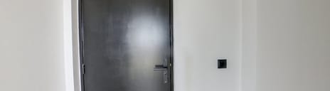 Dit appartement bevindt zich aan de achterzijde van het gebouw. Achter de voordeur bevindt zich de hal, met het separate toilet en fonteintje en de moderne badkamer (1,97 x 2,31) voorzien van kwartronde douche, wastafel met meubel en de wasmachineaansluiting. Fraaie elementen zijn de kwartronde douchewand, zwarte kranen, hoge handdoekenradiator en de spiegel boven de wastafel.
