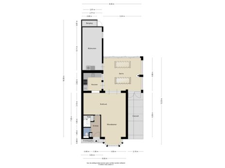 - 100 m² (12,50 meter diep en 8,00 meter breed)