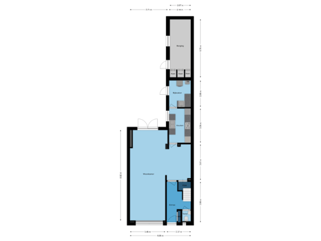 - 42 m² (10,92 meter diep en 3,86 meter breed)