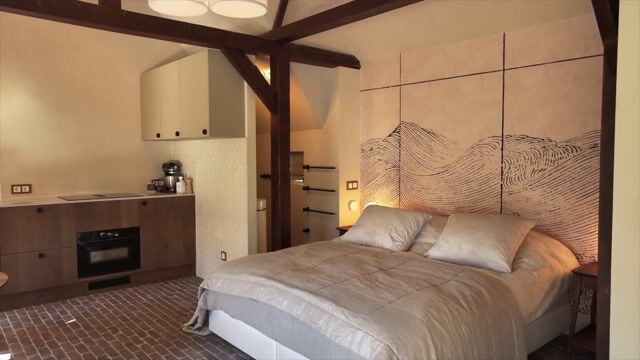 Het voormalige koetshuis is omgebouwd tot een luxe en zelfstandig gastenverblijf met recreatieve bestemming. Deze stijlvolle studio beschikt over een woon-/slaapruimte, een moderne open keuken en een badkamer met inloopdouche en separaat toilet en tevens voorzien van vloerverwarming, een houtkachel en airconditioning, wat zorgt voor extra comfort.