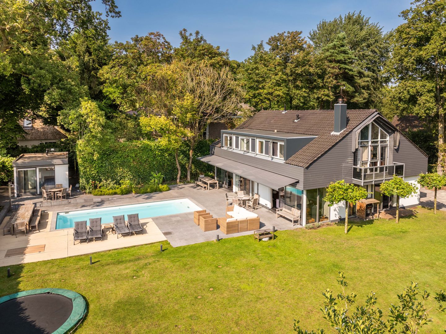- Airconditioning, alarminstallatie, buitenzonwering, dakraam, rookkanaal, sauna, schuifpui, en zwembad