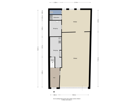 Jullie betreden de winkel aan de voorzijde middels het entree. De hal is afgewerkt met een tegelen vloer, spachtelputz wanden en houten schrootjes plafond. De hal biedt toegang tot de winkel-/bedrijfsruimte, de gang en de eerste verdieping middels een vaste trapopgang. De gang biedt toegang tot de meterkast met 15 groepen (met mogelijkheid tot gesplitste indeling) en beschikt over de aansluiting voor wasmachine en droger.