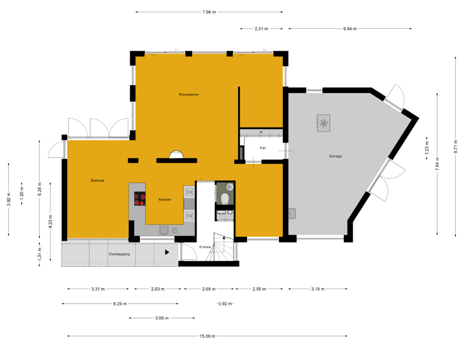 - Royale, inpandig te bereiken garage en een oprit voor meerdere auto’s;