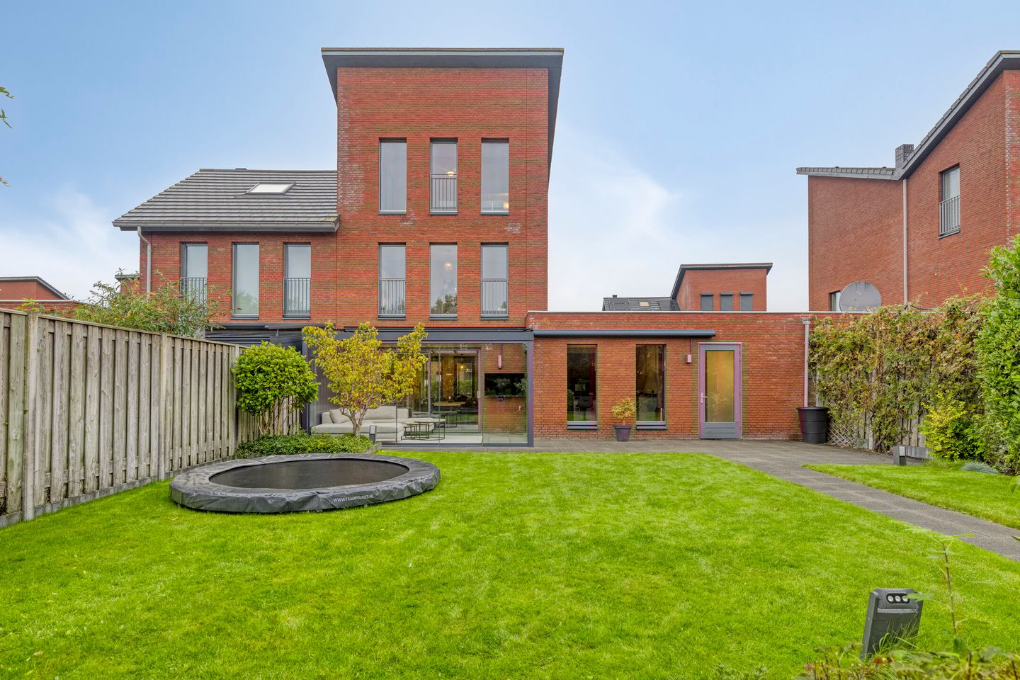 - De achtertuin is verzorgd aangelegd en bereikbaar via de serre of bijkeuken; hier is ruimte voor een terras, zithoek en eventueel speelgelegenheid