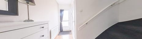 Via de entree op de eerste verdieping kom je in een centrale hal met garderobehoek, trapopgang, meterkast, handige bergkast en een toilet. Vervolgens betreed je de ruime woonkamer van bijna 6 meter breed en meer dan 5,5 meter diep – een heerlijke leefruimte die door de raampartijen aan de voorzijde baadt in het daglicht. De afwerking is verzorgd en neutraal, met een fraaie laminaatvloer en strakke wanden.