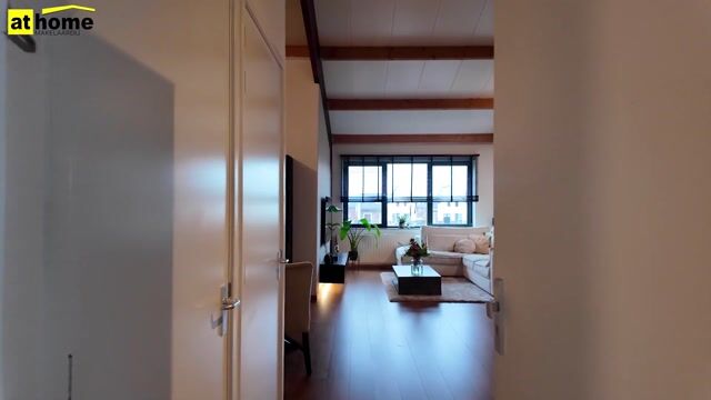 Het absolute pronkstuk van deze ruimte is het indrukwekkend hoge plafond met fraaie, rustieke houten balken, die zorgen voor een warme, karaktervolle uitstraling en een uniek loftgevoel. De gehele ruimte is netjes en smaakvol afgewerkt, wat bijdraagt aan een verzorgde en instapklare woonbeleving.