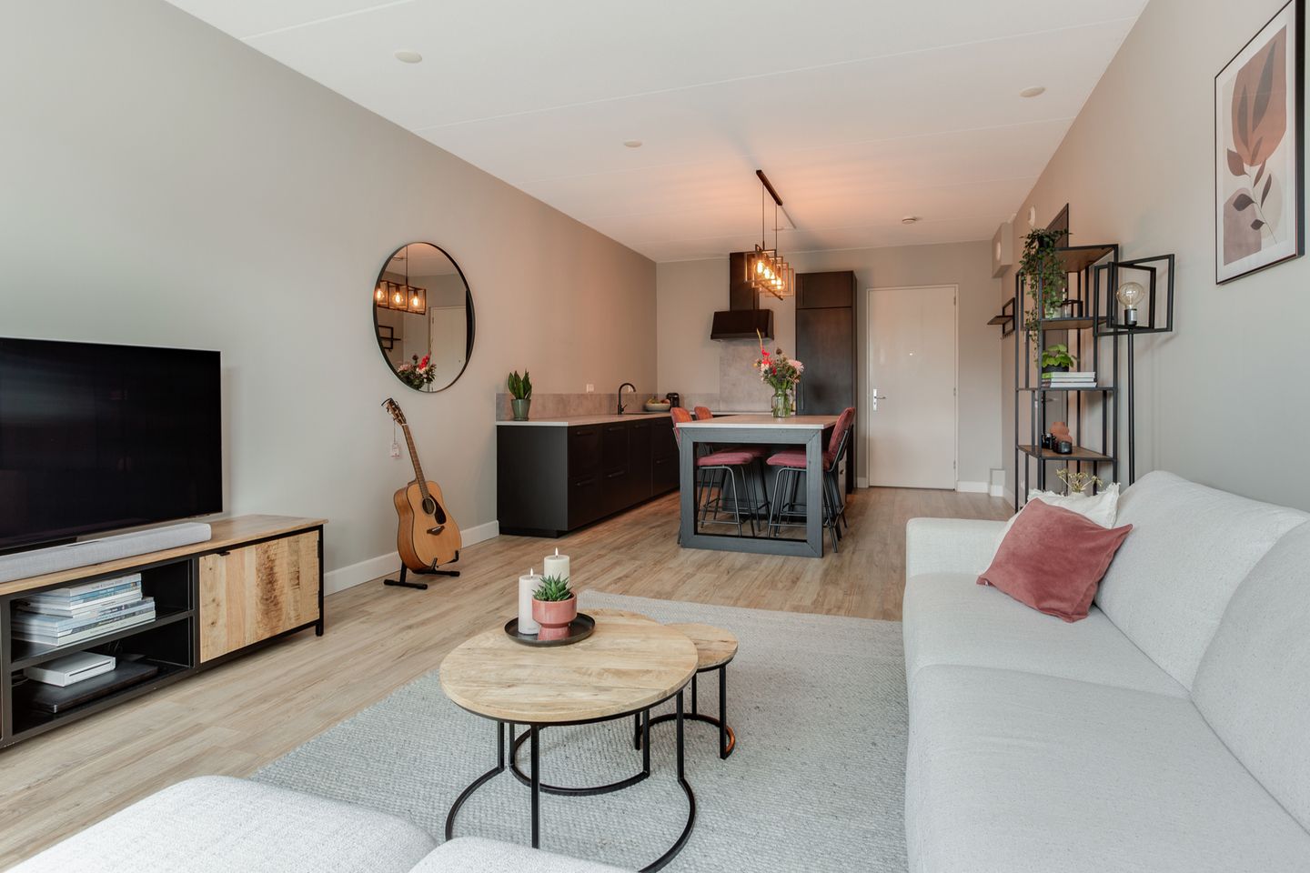 Begane grond: bij binnenkomst van het appartement stapt u de heerlijk, modern en trendy afgewerkte living in.