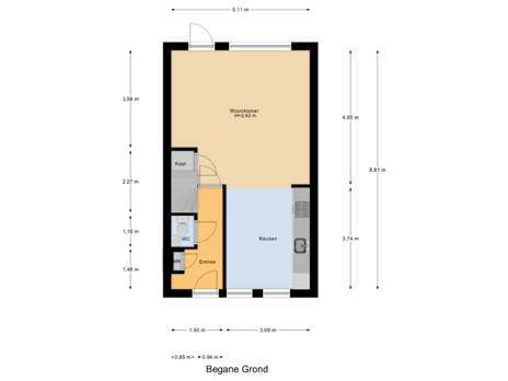 - 48 m² (8,98 meter diep en 5,32 meter breed)