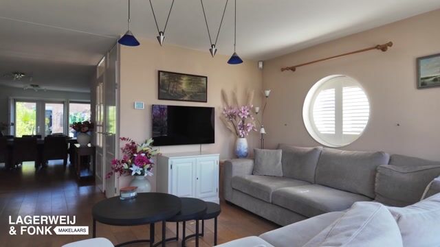 Begane grond: Entree aan de zijkant met hal, trapopgang, garderobe en toilet. De ruime, lichte woonkamer heeft een warme uitstraling en is aan de voorzijde voorzien van een halfronde erker met dubbele openslaande deuren. Aan de achterzijde ligt de open hoekkeuken, uitgerust met diverse inbouwapparatuur zoals een keramische kookplaat, oven, magnetron (2024), koel-vriescombinatie, vaatwasser en een spoelbak met Quooker-kraan. De nette houten parketvloer geeft het geheel een warme uitstraling en via de dubbele deuren loopt u zo de achtertuin in, perfect om binnen en buiten moeiteloos met elkaar te verbinden.