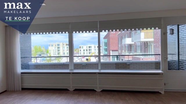 De woonkamer van 33m² heeft een fijne lichtinval door de grote raampartijen, en biedt toegang tot het balkon van 6 meter breed, gelegen op het zonnige zuidoosten met gezellige uitkijk op het winkelend publiek. De keuken van 5 m2 in hoekopstelling is voorzien van vaatwasmachine, gaskookstel met afzuigkap, koel/vries combinatie en een oven.