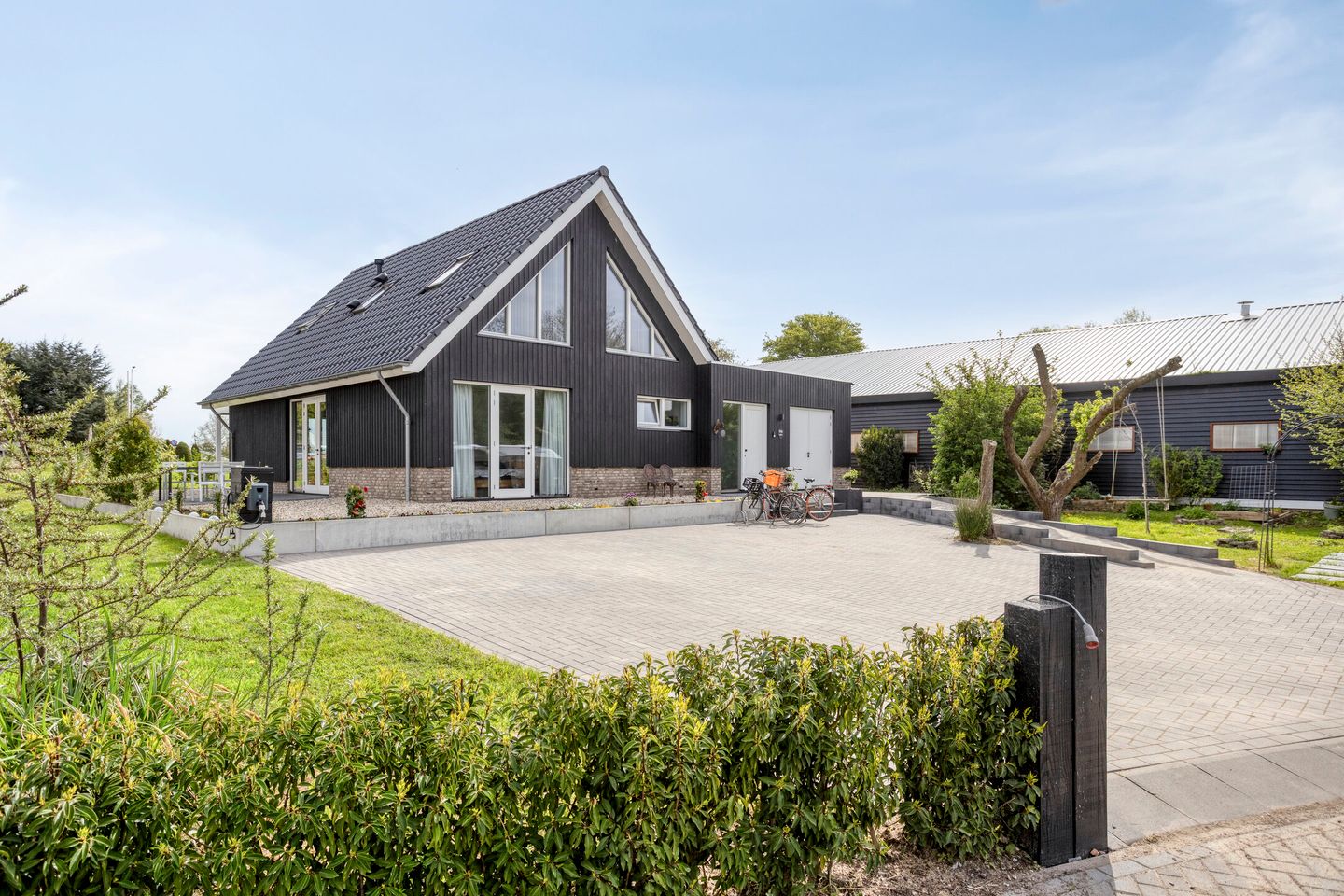 De ruime oprit en garage bieden volop parkeergelegenheid op eigen terrein.