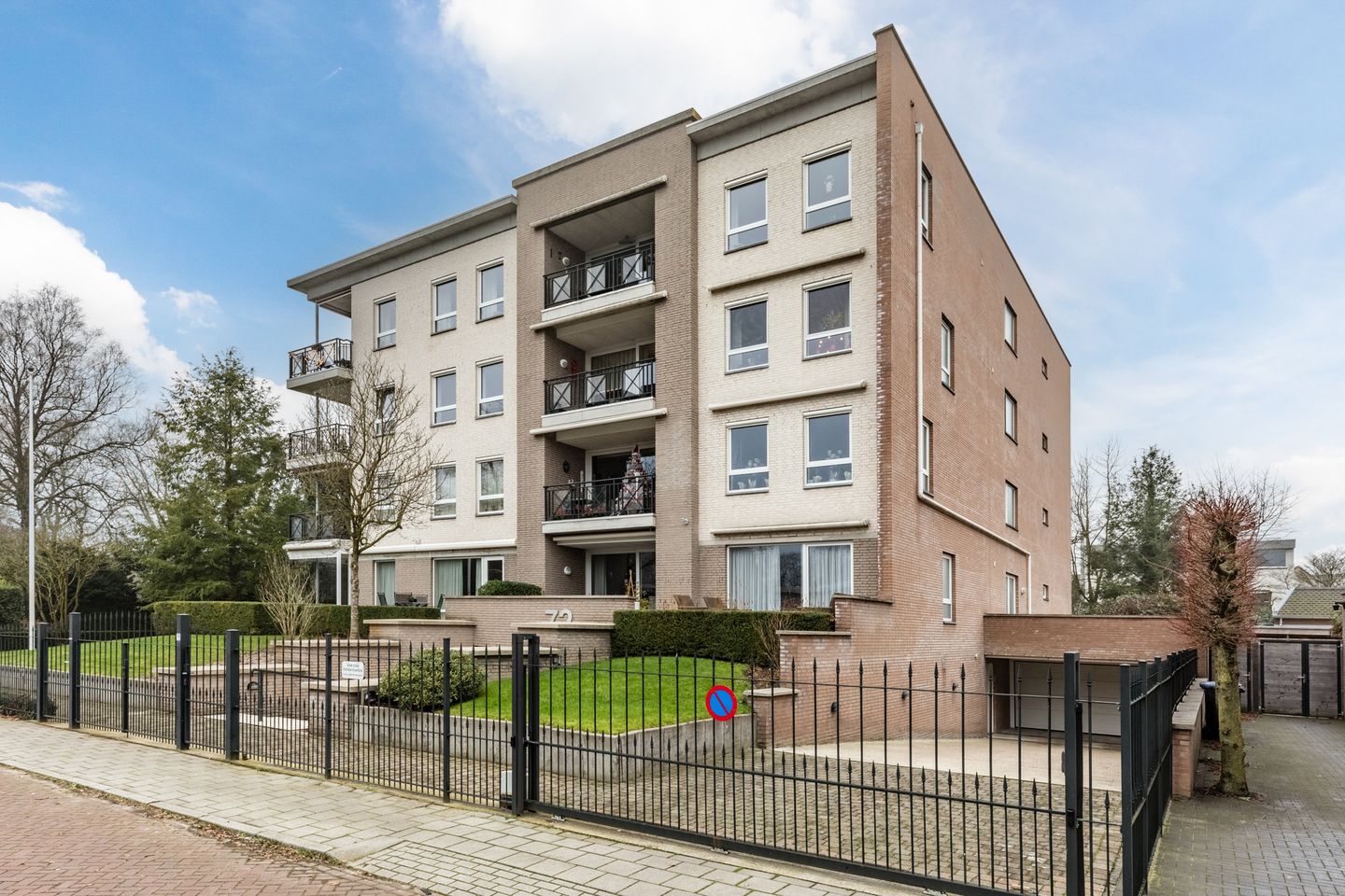 Er is een gemeenschappelijke tuin rondom het complex met aan de achterzijde een binnentuin met jeu de boules baan en ruimte voor een terras.