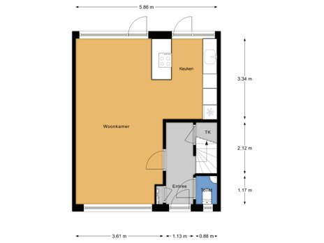 Begane grond: Entree, hal met meterkast, gemoderniseerde toiletruimte en trapkast. De woonkamer heeft een ruimtelijke indeling door de open keuken welke is ingericht met een moderne keuken met kookeiland. De woonkamer is voorzien van airco.