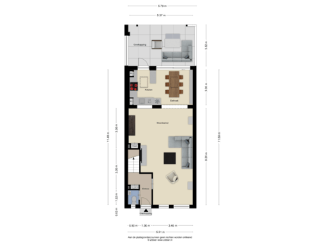 - 61 m² (11,00 meter diep en 5,50 meter breed)