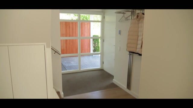 Je komt binnen in een ruime, lichte hal die direct laat zien wat je van deze woning kunt verwachten: stijl, comfort en techniek die naadloos samenkomen. De hal is voorzien van sfeervolle verlichting met sensoren, een trappartij met subtiele wandverlichting en dubbele paneeldeuren met melkglas richting het woongedeelte. Via het domoticascherm bedien je hier alles in huis, van verlichting tot beveiliging.