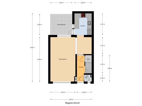 - 72 m² (12,00 meter diep en 6,00 meter breed)