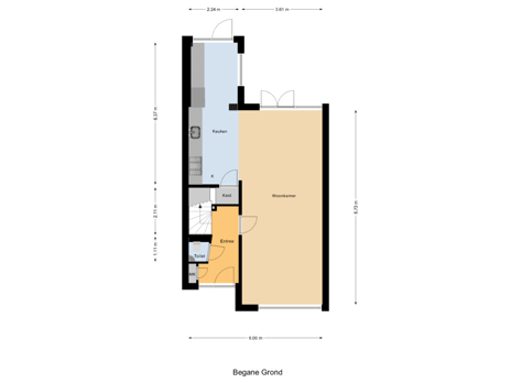 - 55 m² (12,40 meter diep en 6,26 meter breed)