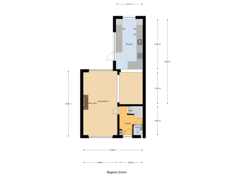 - 68 m² (11,35 meter diep en 6,00 meter breed)