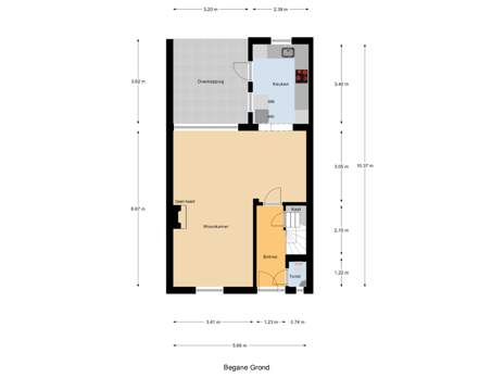 - 70 m² (16,00 meter diep en 5,80 meter breed)
