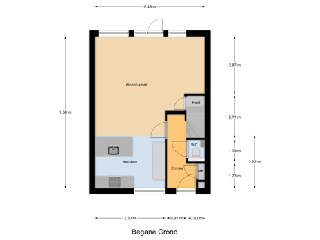 - 50 m² (11,47 meter diep en 5,69 meter breed)