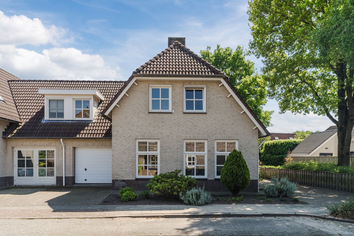 De woning beschikt over een fraai aangelegde voortuin en een royale zijtuin aan de rechterzijde, die volledig is verhard. Deze biedt toegang tot de voordeur en een poort naar de achtertuin. De achtertuin, gesitueerd op het zuidoosten, is opvallend ruim en biedt volop privacy dankzij de vrije ligging. Hier vindt u een combinatie van een sfeervol terras, een verzorgd gazon en kleurrijke plantenborders – een heerlijke plek om buiten te genieten. Doordat de tuin gesitueerd is op het zuidoosten, heb je de gehele dag zon maar ook schaduw van de bomen, de perfecte combinatie! Daarnaast staat er een houten tuinhuisje voor extra berging. Aan de linkerzijde van de woning bevindt zich een oprit met parkeergelegenheid direct voor de inpandige garage.