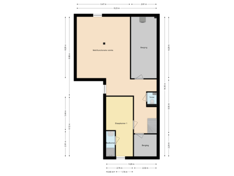 - 63 m² (5,72 meter diep en 8,38 meter breed)