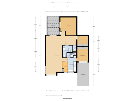 - 80 m² (8,00 meter diep en 10,00 meter breed)
