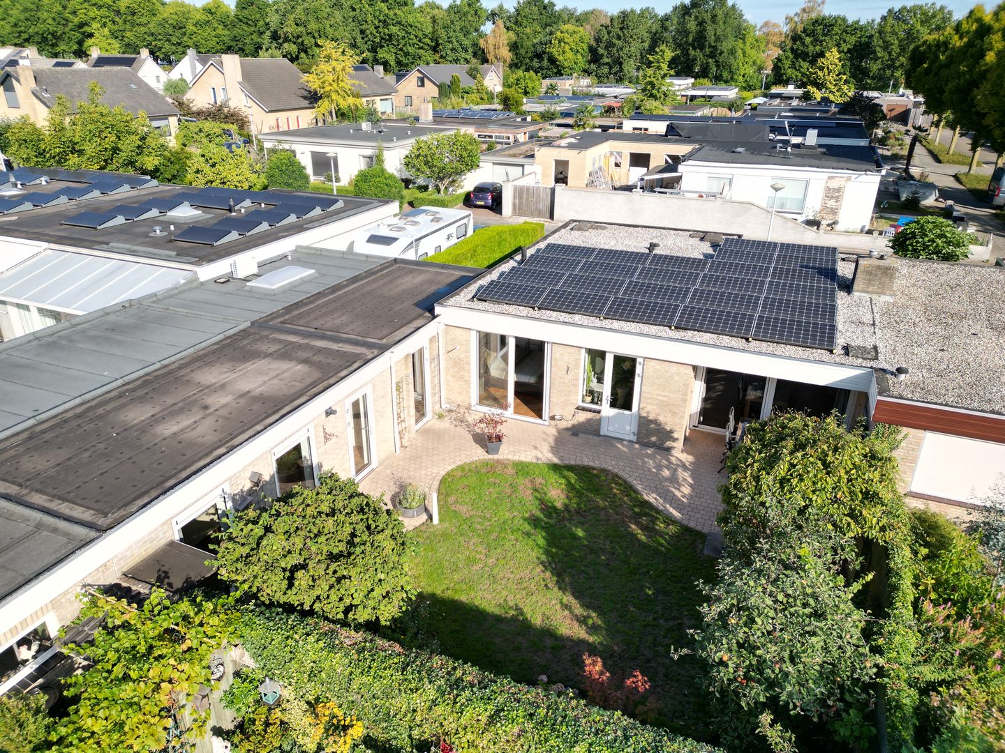 * Op het platte dak van de woning zijn 24 zonnepanelen geïnstalleerd voor het opwekken van stroom.