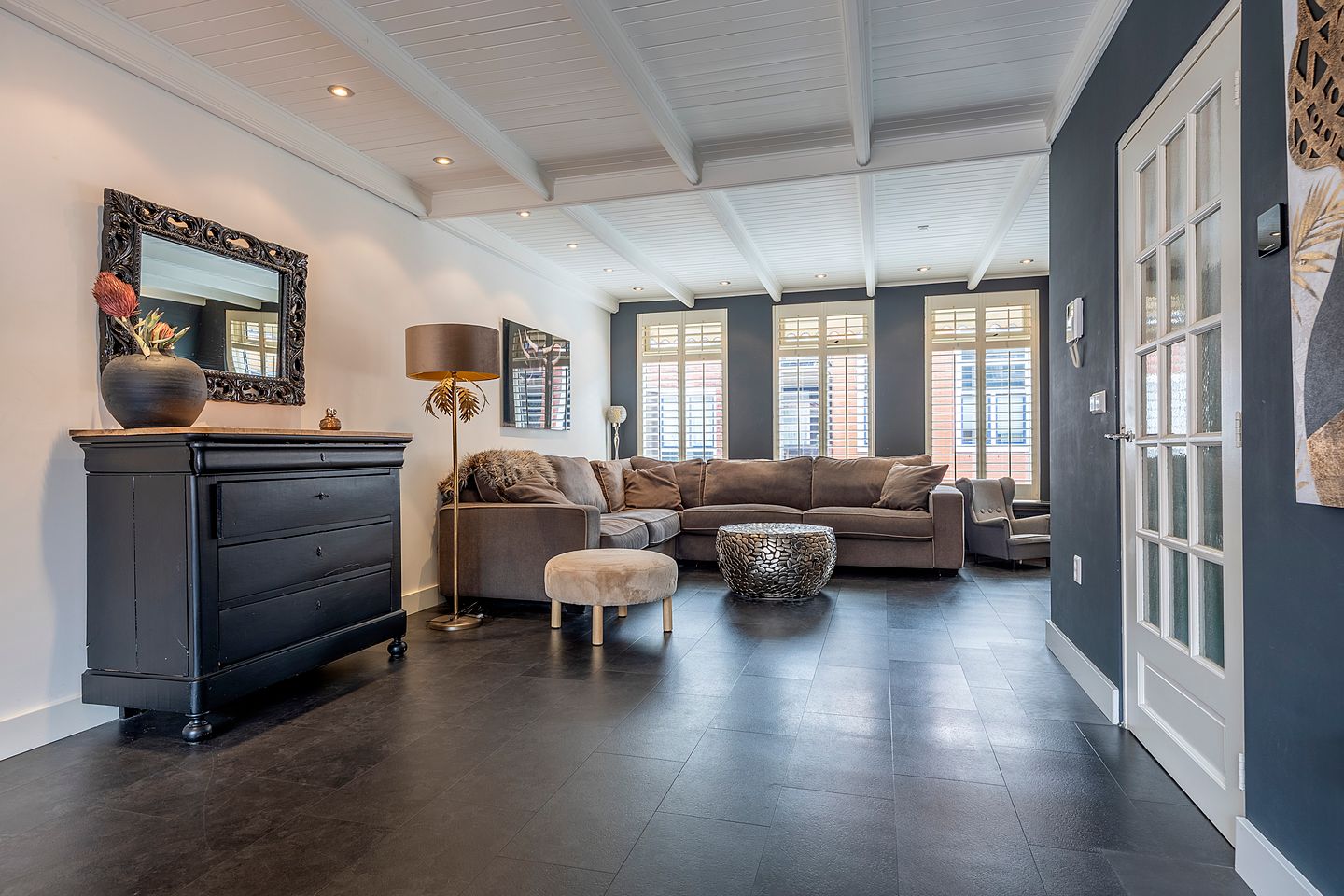 - authentiek balkenplafond en strakke wandafwerking