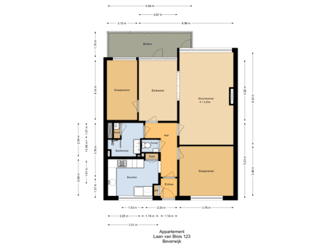 Het appartement telt thans twee slaapkamers maar met een kleine aanpassing is een derde slaapkamer weer te realiseren. Ruime woonkamer en separate eetkamer, dichte keuken voorzien van enige inbouwapparatuur en opstelplaats voor de wasmachine en droger. Verzorgde badkamer voorzien van een douche, dubbel wastafelmeubel en opstelplaatsv voor de cv ketel.