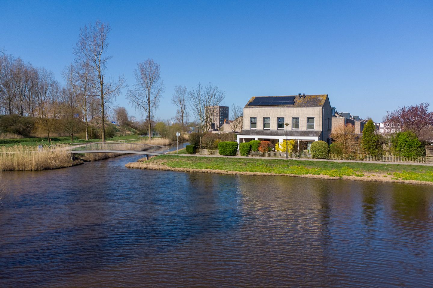 Binnen biedt de woning een woonoppervlakte van circa 168 m² en een prettige, lichte indeling. De ruime woonkamer met grote raampartijen en openslaande deuren staat in directe verbinding met de tuin en het water, wat zorgt voor een prachtig uitzicht en veel natuurlijke lichtinval. De woning beschikt over een energielabel A, wat bijdraagt aan comfortabel en energiezuinig wonen. De woning is voorzien van 10 zonnepanelen.