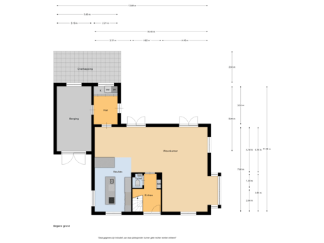 - 135 m² (10,24 meter diep en 15,68 meter breed)