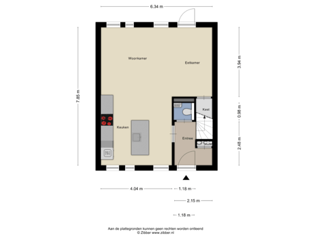 - 51 m² (7,87 meter diep en 6,54 meter breed)